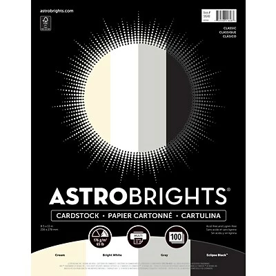 Add color to heavyweight projects like greeting cards, announcements and scrapbooks with this 65-pound card stock. This acid- and lignin-free paper produces long-lasting projects and is perfect for use in printers, copiers or typewriters. This pack includes 100 sheets of Astrobrights “Classic Natural” 4-Color card stock to supply offices, schools and large home projects.