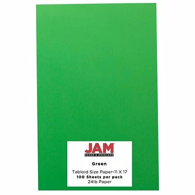 Vibrant and bold, this JAM Paper® Bright Colored Tabloid Cardstock will turn heads, catch eyes, and make anyone green with envy. Green with envy, that is. This cardstock’s color is close to a kelly green, so it will stand out for whatever you use it for. Perfect for posters, brochures, business needs, catalogs, newsletters, marketing materials, and even arts and crafts, this cardstock will surely meet all of your expectations. It is made of 65lb paper, so it is sturdy and will stand up to the elements. The 11 x 17 inch size makes it a tabloid size, so it is as big as it is beautiful. It is made of 30% recycled content and is sold in packs of 50.