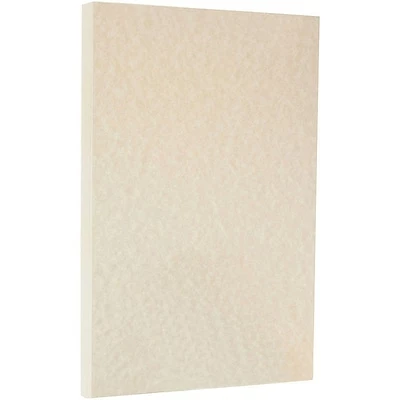 For a truly authentic look and feel, get your hands on this brown JAM Paper® Parchment Legal Size Cardstock! This cardstock is made of 65lb paper as well as 30% recycled post consumer content, so not only is it strong, it is eco friendly as well. The antique, mottled finish is a beautiful way to bring anyone back to the olden days where parchment was the paper of choice. This particular brown color is a light shade of beige, so it is the perfect neutral to use for virtually any occasion. Try using it for invitations, cards and notes as well as arts and crafts, business mailings and marketing materials. This is a legal size, so it measures 8.5 x 14 inches. It is also made of 30% recycled content and is sold in packs of 50.