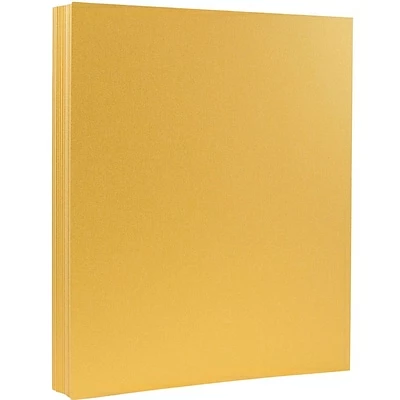The color gold always has a regal and expensive feel to it, and that is no exception when you use this Stardream Metallic Gold JAM Paper® Metallic Cardstock. This gold color is bright and beautiful, and wonderfully golden with hints of yellow. The shimmering and smooth finish is perfect to write or print on and is sure to be remembered. This cardstock is made of 110lb paper, so the thickness of it will be felt and seen. It measures 8.5 x 11 inches, so it is a standard letter size. Use this perfect cardstock for any and all of your paper needs. It will make any invitation, card, note, business mailing, promotional project, or arts and crafts endeavor sparkle and shine. You will turn heads by using virtually no effort when you use this cardstock. It is sold in packs of 50.