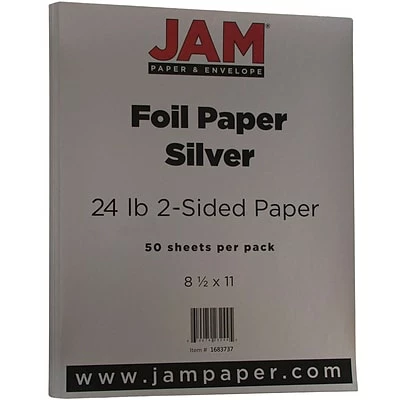 JAM Paper® 2 Sided Silver foil paper in a pack of 50 sheets is perfect for those special projects and occasions.