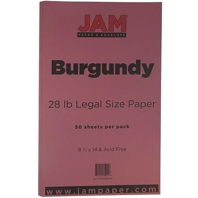 JAM Paper® Burgundy Matte Legal Paper features a dark brownish red shade of burgundy that makes it great for creating items for holidays and formal events! This pack contains a total of 50 sheets of legal sized paper. Each sheet measures 8.5 x 14 inches. This smooth, 38lb paper is printer friendly and acid free. Use it to make invitations, programs, greeting cards, table menus, flyers, promotional materials, brochures and more. This paper is also great for arts and crafts and DIY projects. Use it for scrapbooking, school projects, origami, and other creative purposes. This burgundy legal sized paper is great for autumn and winter!