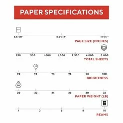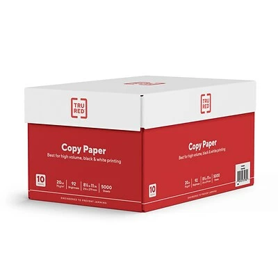 Expect high-quality results for home and office documents with this printer paper. This 20 lb. weight paper is engineered to prevent jamming, making it ideal for use in all machines. With a 92 brightness rating, this paper delivers crisp text and images in black and white. Featuring 5000 sheets, this Tru Red 8.5″ x 11″ white printer paper provides the right amount to keep up with your daily demand.