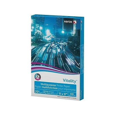 Xerox® Vitality® Multipurpose Printer Paper is a versatile paper that is good for most jobs. Featuring a whiter 92 GE brightness and higher opacity, making it perfect for documents with a crisp, professional look. Features ColorLok® Technology for bolder blacks and vivid colors with ink jet printing and better quality and performance with laser printing. 99.99% jam free on high-speed digital printing equipment. Designed to run in all types of printers and copiers, and ideal for high-volume printing.
